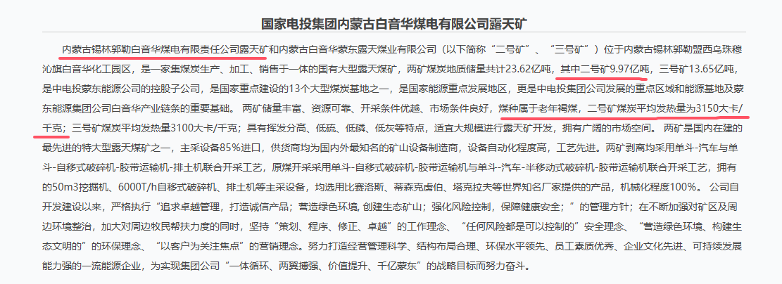 据国家电投集团官网信息,白音华煤电旗下的露天矿位于内蒙古锡林郭勒盟西乌珠穆沁旗白音华化工园区内,上述露天矿是国家重点建设的13个大型煤炭基地之一,是国家能源重点发展地区,更是国家电投集团发展的重点区域和能源基地。